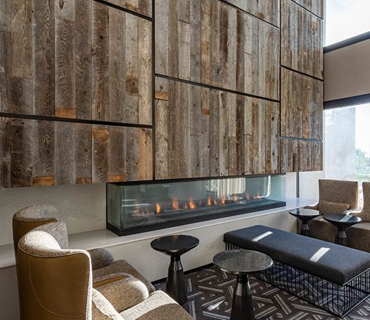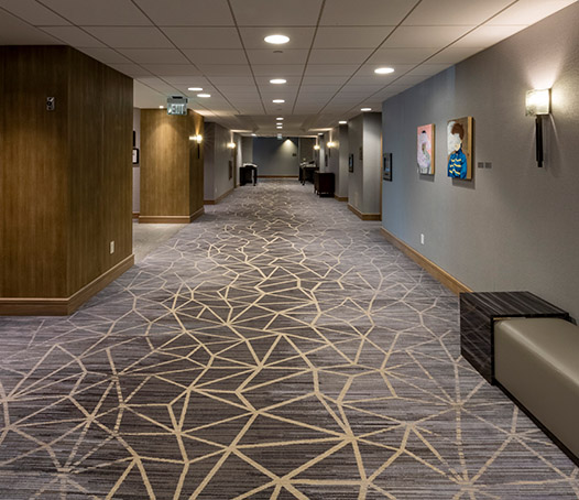 Following the muted palette theme, Koroseal's Wallcovering reduces this hotel's footprint. 24% of the material in this Wallcovering comes from a combination of pre and post consumer recycled content, rapidly renewable and sustainability harvested materials.